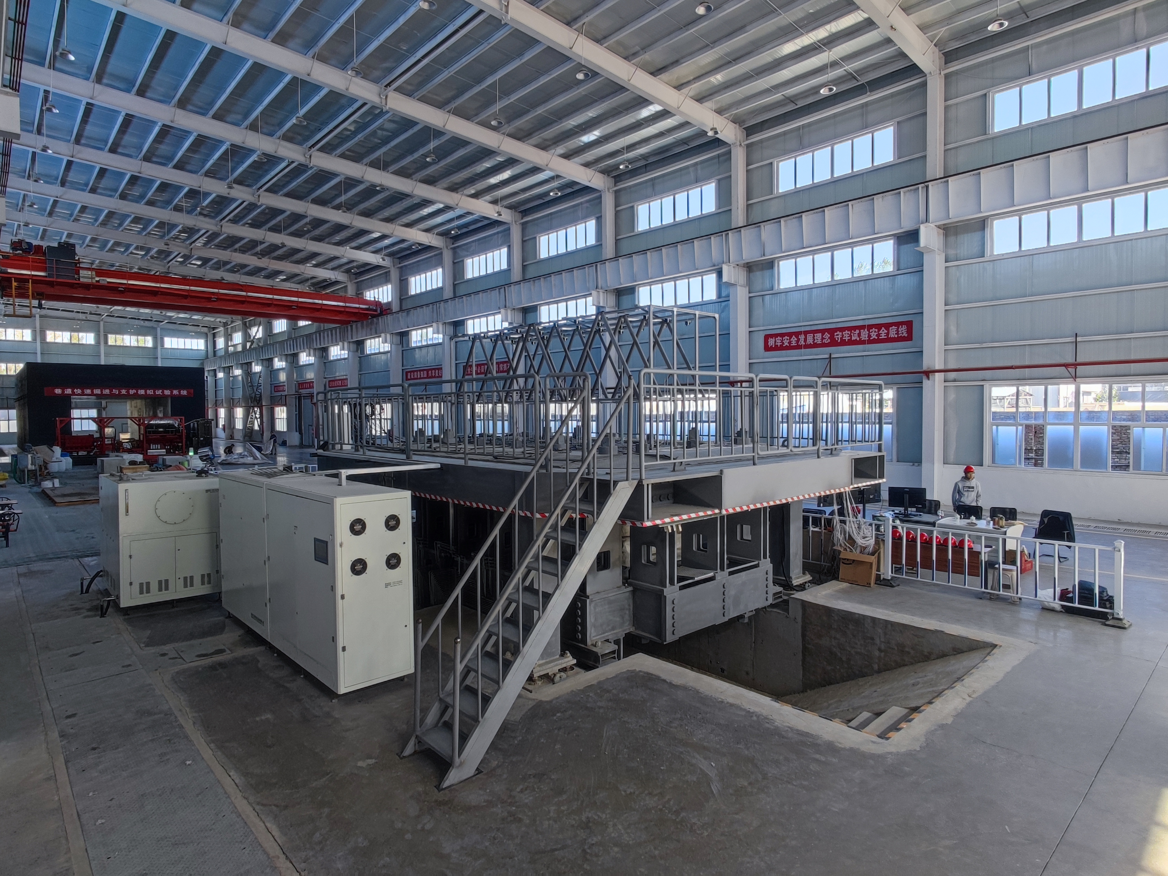 近日,国际首套1:1比例锚杆护表构件试验系统完成首架试验。中国煤科首席科学家、中国工程院院士康红普现场指导锚杆护表构件的力学性能试验,并取得了理想的试验结果。本次试验通过“1:1比例锚杆护表构件试验系统”,在实验室模拟了巷道围岩变形全过程,还原了井下锚杆支护巷道围岩变形破坏特征。