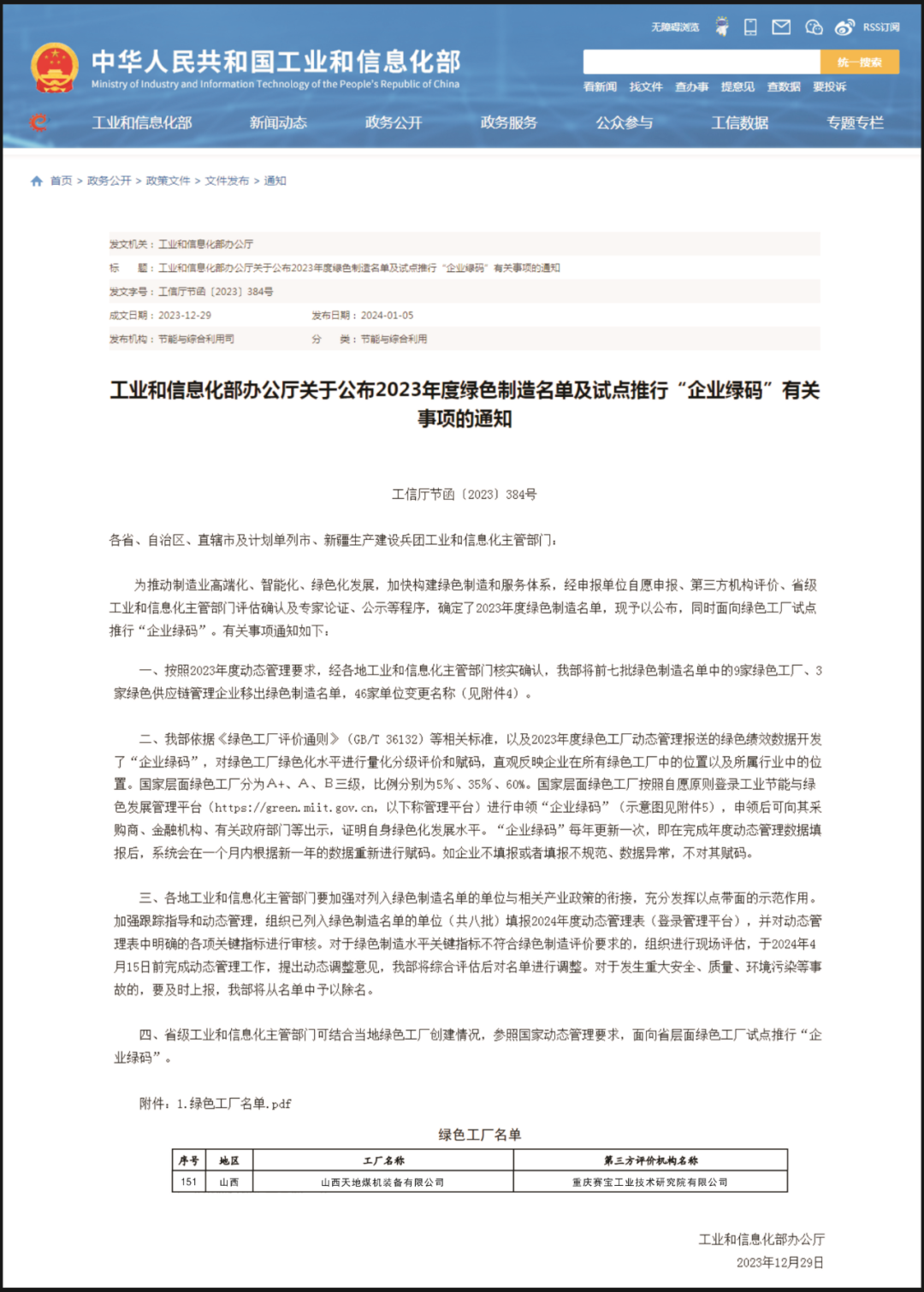近日,国家工业和信息化部公布了2023年度绿色制造名单,山西天地煤机装备有限公司顺利通过国家级“绿色工厂”评定,也标志着山西煤机在绿色制造体系建设方面取得了长足进展。