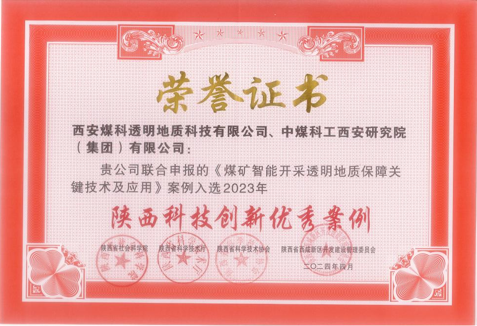 4月12日,2023年陕西科技创新优秀案例评选结果公布,西安研究院透明地质公司申报的“煤矿智能开采透明地质保障关键技术及应用”成功入选。