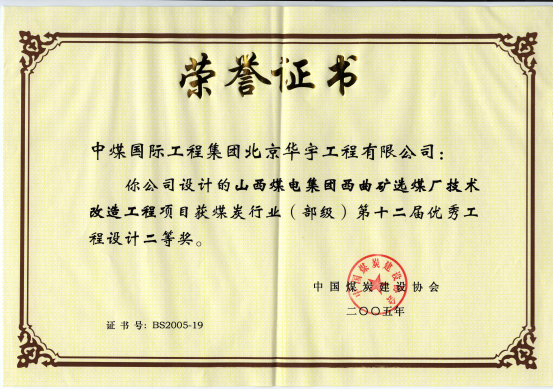 6.西山煤电集团西曲矿选煤厂技术改造工程获“煤炭行业(部级)第十二届优秀工程设计奖 二等奖”(2005年)