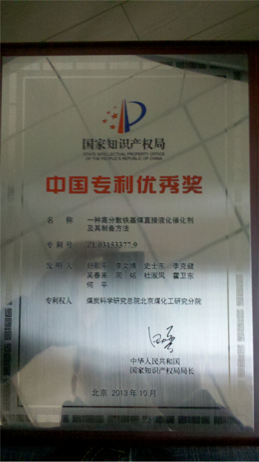 4 | 一种高分散铁基煤直接液化催化剂及其制备方法 | 第十五届中国专利奖 | 优秀奖 | 2013 |