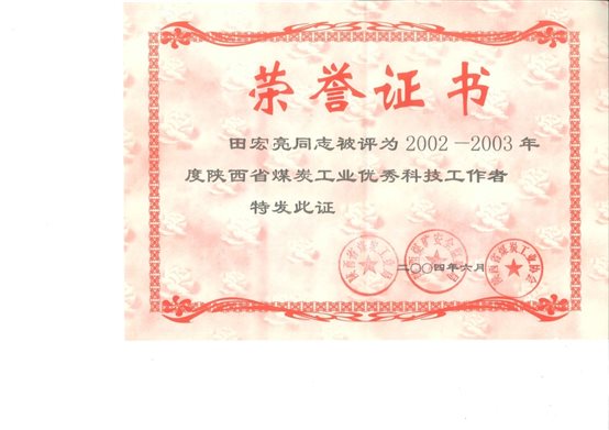 [1] 2004年获“陕西省优秀青年煤炭科技工作者”荣誉称号