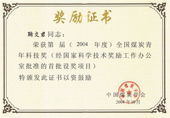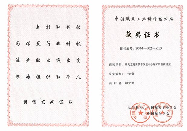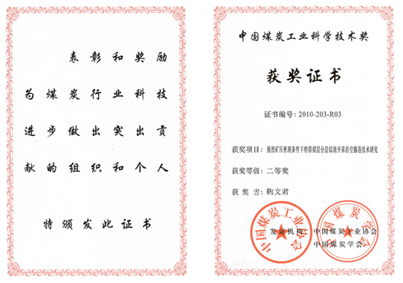 6、复杂特厚煤层综放开采强矿压工作面支护系统设备研制与适应性研究,中国煤炭工业科学技术奖二等奖,2011,排名4;