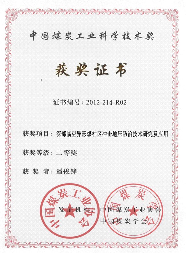 潘俊锋,男,陕西旬邑人,博士,研究员,硕士生导师,中煤科工开采研究院采矿所副所长。国家安全生产专家组专家,中国煤炭学会煤矿动力灾害防治专委会副主任,中国岩石力学与工程学会动力学专委会委员,中国煤炭学会岩石力学与支护专委会委员,国家科技专家库专家。曾获国家科技进步二等奖1项,其他省部级奖励18余项;获孙越崎青年科技奖、中国煤炭工业杰出青年科技工作者称号、中国岩石力学与工程学会青年科技奖、全国杰出工程师青年奖。申请发明专利15项,授权10项,授权实用新型专利8项,发表学术论文50余篇,其中SCI/EI收录35篇,第1作者27篇,出版专著1部,参编著作4部;主持或参与制定国家、行业标准、规定等12项。