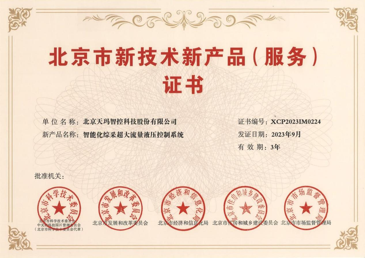 近日,北京市科学技术委员会、中关村科技园区管理委员会、北京市发展和改革委员会等五大部门联合公布了2023年度第一批(总第十八批)北京市新技术新产品(服务)名单。凭借技术先进性、产品创新性及质量可靠性优势,天玛智控“智能化综采超大流量液压控制系统”成功上榜。